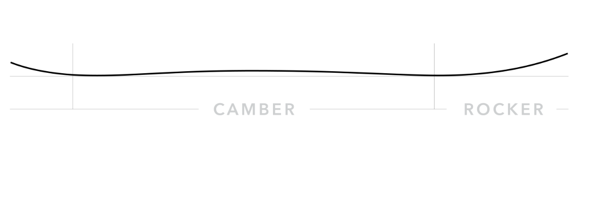 Float Camber - cambre sous le pied avec une montée précoce/rocker dans le nez. Cela vous permet de conserver votre vitesse dans les virages et vous donne de l'accroche et de la stabilité sur le hardpack, tandis que le nose monte en douceur dans la poudreuse et amorce les virages facilement.