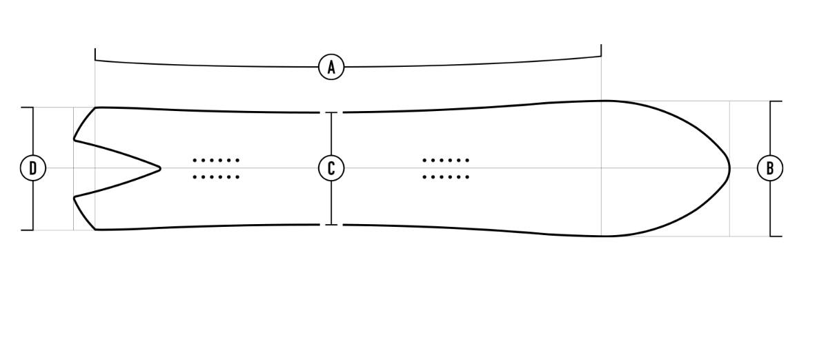 Directional Tapered (Swallowtail) - une forme directionnelle distincte avec un nez large, une forme effilée et une queue d'hirondelle. Le tail s'enfonce automatiquement dans la poudreuse pour plus de flottabilité et des virages plus rapides, et sur les pistes de glisse, l'outline large vous donne une super stabilité et de la place pour vous enfoncer.