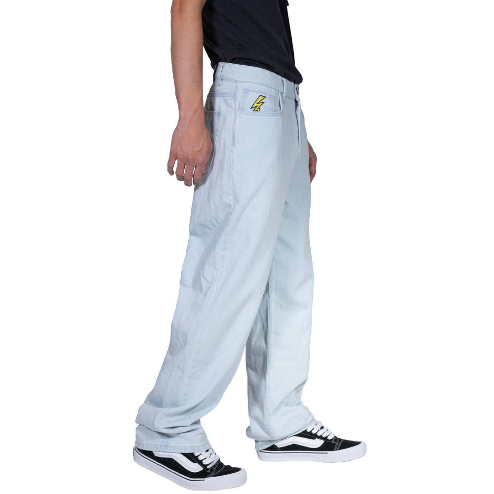 Le Stoked Electric Baggy Jeans Light Blue offre un équilibre parfait entre robustesse et style. Fabriqué en denim épais 100 % coton, ce jean unisexe est conçu pour résister aux coups, parfait pour le skate intense comme pour le streetwear décontracté. La coupe fuselée permet à ce jean de tomber sur vos chaussures, tandis que la coupe ample vous donne la liberté de bouger confortablement.