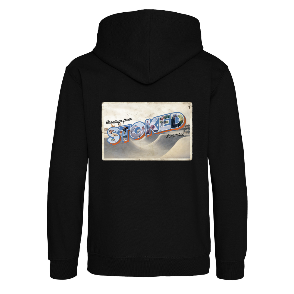 Le t-shirt de skate Greetings From Stoked de la collection exclusive en édition limitée de Stoked Board Co rend hommage aux racines de Stoked. Avec un timbre iconique sur le devant représentant la ville natale de Stoked, 1500 Halle, et un design de carte postale au dos mettant en vedette l'équipe de skate riders de Stoked, ce t-shirt apporte la force de notre communauté et de notre passion à votre look streetwear. Ce design est destiné aux personnes qui sont fières de leurs racines et qui veulent toujours avoir un morceau de chez elles avec elles.
