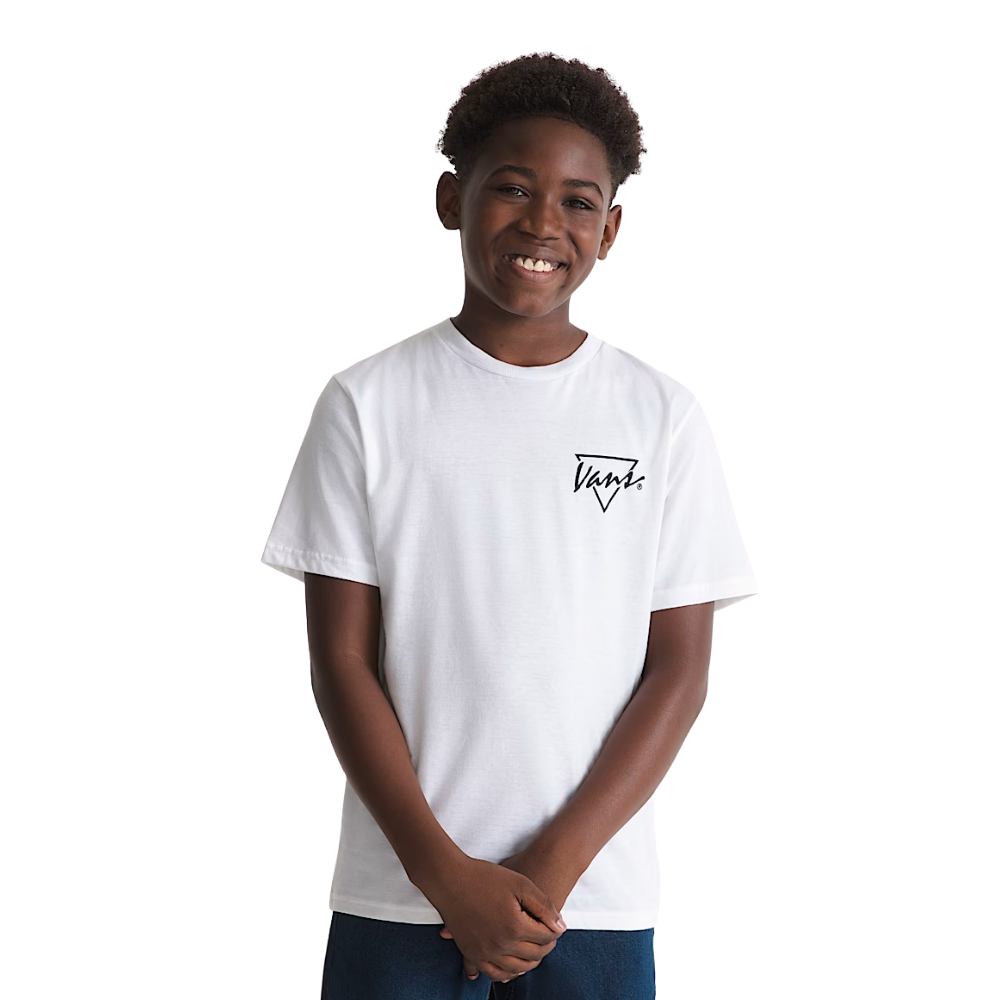 Le T-shirt Vans Kids Palm Drive White apporte aux jeunes skaters l'ambiance estivale ultime. Un look épuré avec un graphisme rafraîchissant - parfait pour les journées ensoleillées, de la cour de récréation au skatepark.