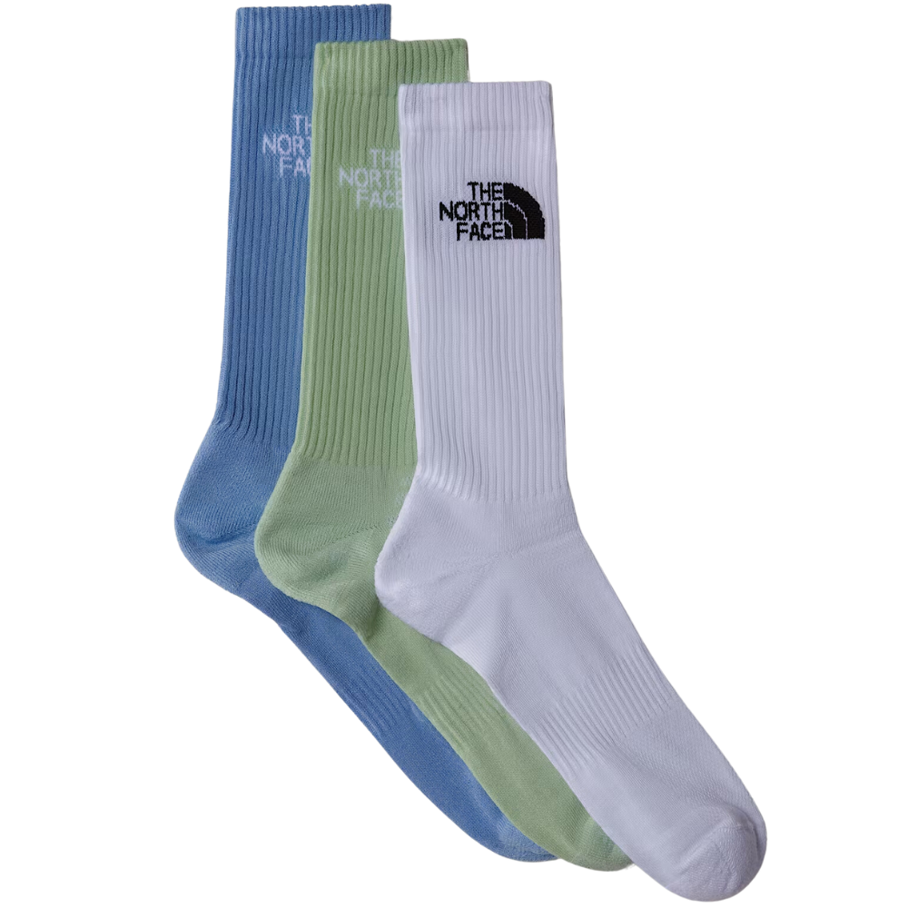 Allez plus loin et travaillez plus dur. Les chaussettes Multi Sport Cush Crew Sock 3P TNF White-Misty Sage-Steel Blue de The North Face ont un rembourrage au niveau des talons et des pointes, une semelle légèrement rembourrée et des zones de ventilation spécifiques qui gardent vos pieds au frais et prêts à explorer davantage - jusqu'au dernier kilomètre.